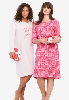 Our sleepwear collection offers inclusive plus sizes, ranging from 12W – 32W, and is always designed with your curves and comfort in mind. We carry a variety of styles to fit your needs—from robes and slippers, to flannel and satin pajamas—so you'll never have to shop for sleepwear anywhere else.
